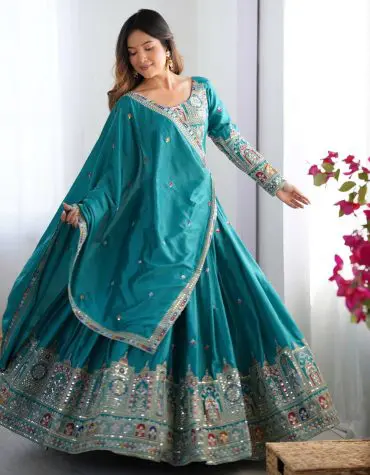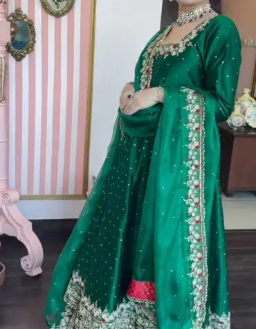 Triveni green heavy embroidered maxi