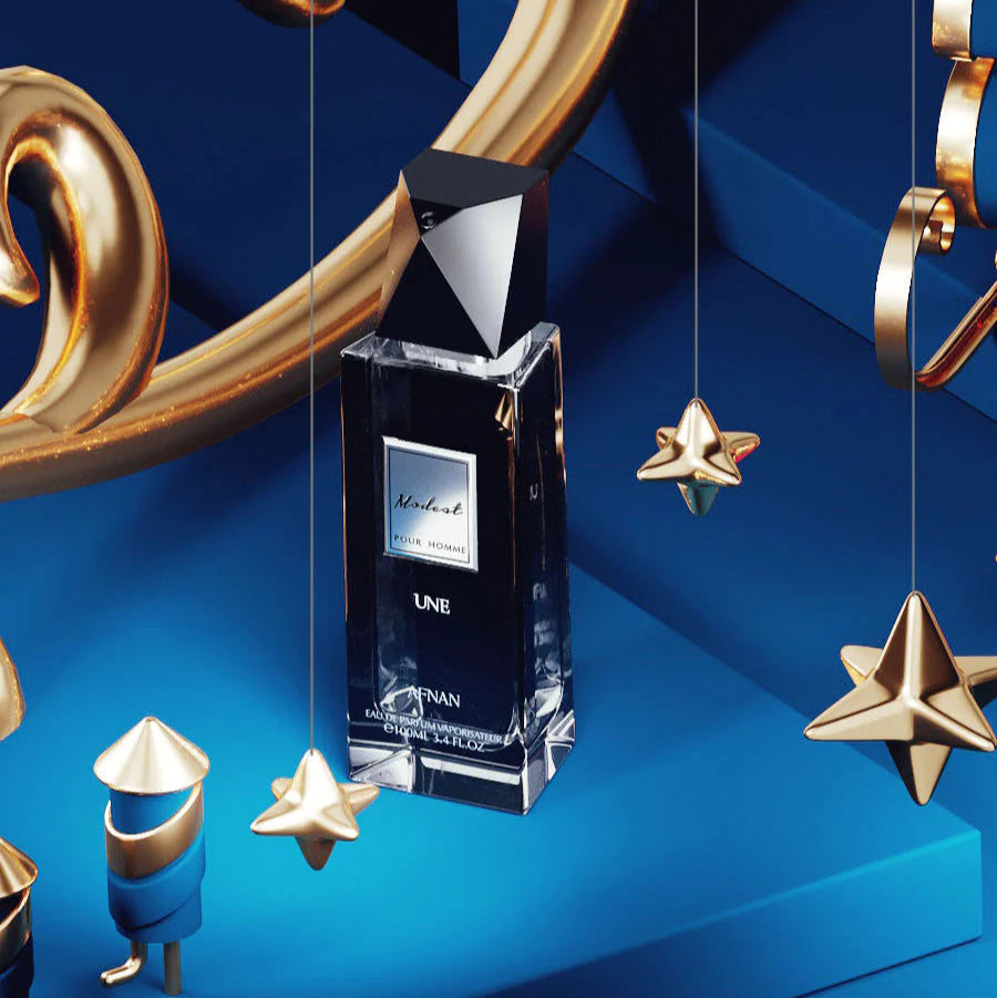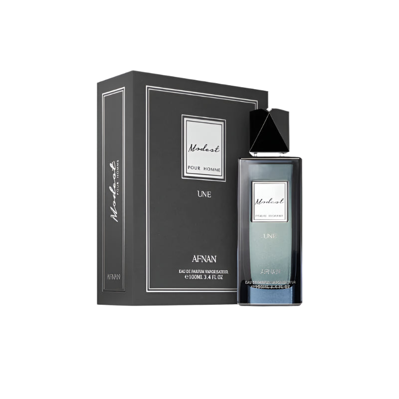 Modest Pour Homme Une by Afnan is a Aromatic Spicy fragrance for men. Modest Pour Homme Une was launched in 2019. Top notes are Pepper, Lavender, Mint and Nutmeg; middle notes are Citruses, Amber and Eucalyptus; base notes are Musk, Vetiver and Cedar.