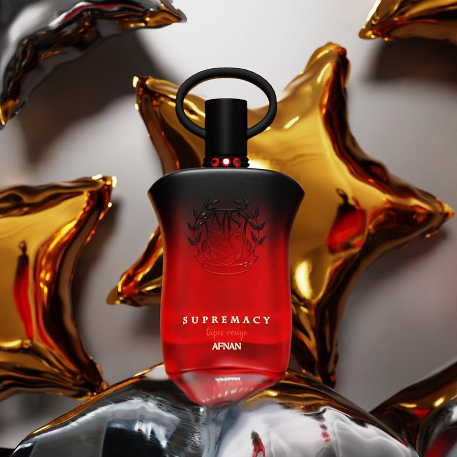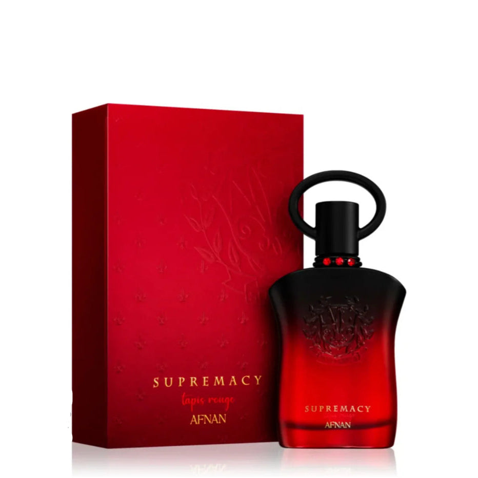 Supremacy Tapis Rouge by Afnan is a Floral Fruity fragrance for women. This is a new fragrance. Supremacy Tapis Rouge was launched in 2024. Top notes are Black Cherry, Litchi and White Peach; middle notes are Plum, Rose, Jasmine and Mahonia; base notes are Vetiver, Cloves and Peony