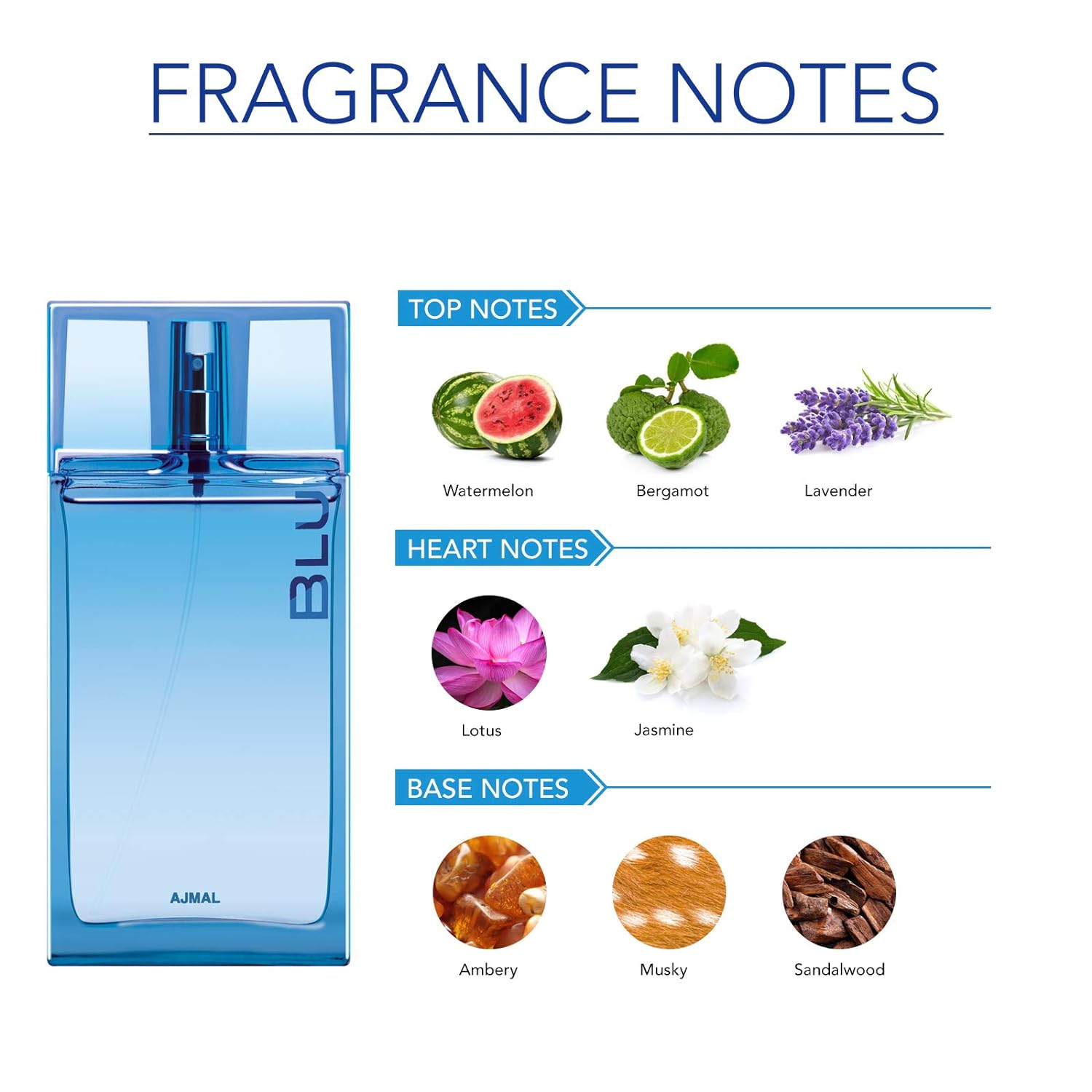Exude exotic fragrance with the Ajmal Blu Eau De Perfume.It is a perfume for men, enriched with a fougere fragrance of a refreshing aroma. This Ajmal Blu perfume is a unique combination of fresh notes from lavender to musk. It is a long-lasting perfume and a perfect choice to wear outdoors.