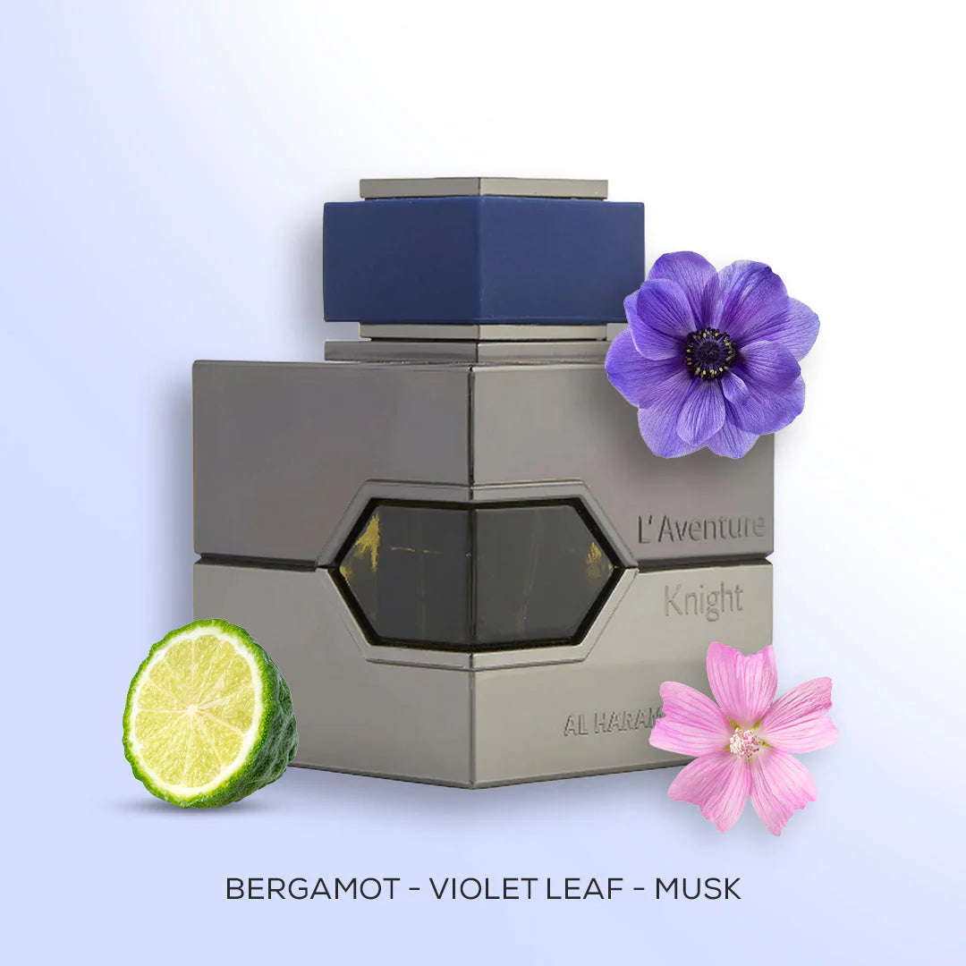 Al Haramain’s L’Aventure Knight is a unique fragrance for men. It has a perfect mix of various fruits, flowers and wood. It has 3 note fragrance that lasts long and keeps one fresh all day. The perfume is hypoallergenic and is safe to use. Top note: Lemon Verbena, Bergamot, Tea Middle note: Iris, Violet leaf Base note: Ambergris, Powdery, Sandalwood, Musk.