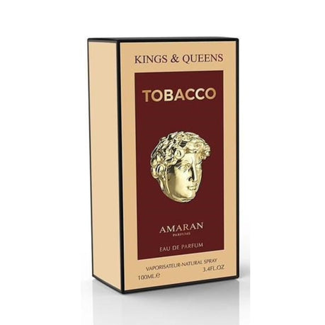 Rule the kingdom with the sensual scent of Amaran Kings & Queens Tobacco Eau De Parfum. This unisex fragrance combines the richness of tobacco with the sweet notes of Amaran to create a unique and captivating scent. Experience the power of this royal blend.