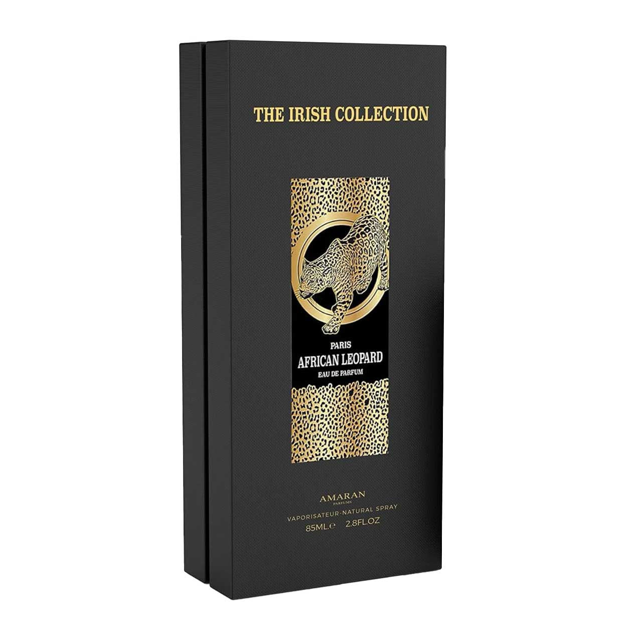 As the scent matures, the base notes of oud, leather, vetiver, and musk provide a warm and enduring foundation, leaving a lasting and memorable impression. African Leopard: The Irish Collection EDP by AMARAN is a fragrance that celebrates the essence of modern masculinity, making it the perfect choice for the contemporary man who seeks to make a lasting impression with a scent that is both captivating and refined. Elevate your presence with the enchanting and enduring scent of African Leopard.