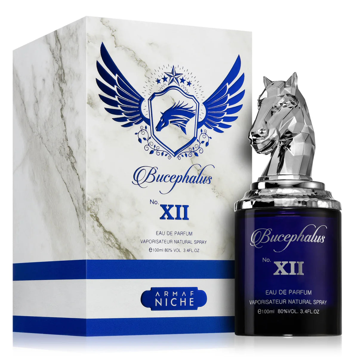 Bucephalus XII by Armaf is a fragrance for men. This is a new fragrance. Bucephalus XII was launched in 2022. Top notes are Lemon, Orange Blossom and Mint; middle notes are Spices, Pepper, Ginger and Nutmeg; base notes are Musk, Amber, Sandalwood, Patchouli and Vetiver