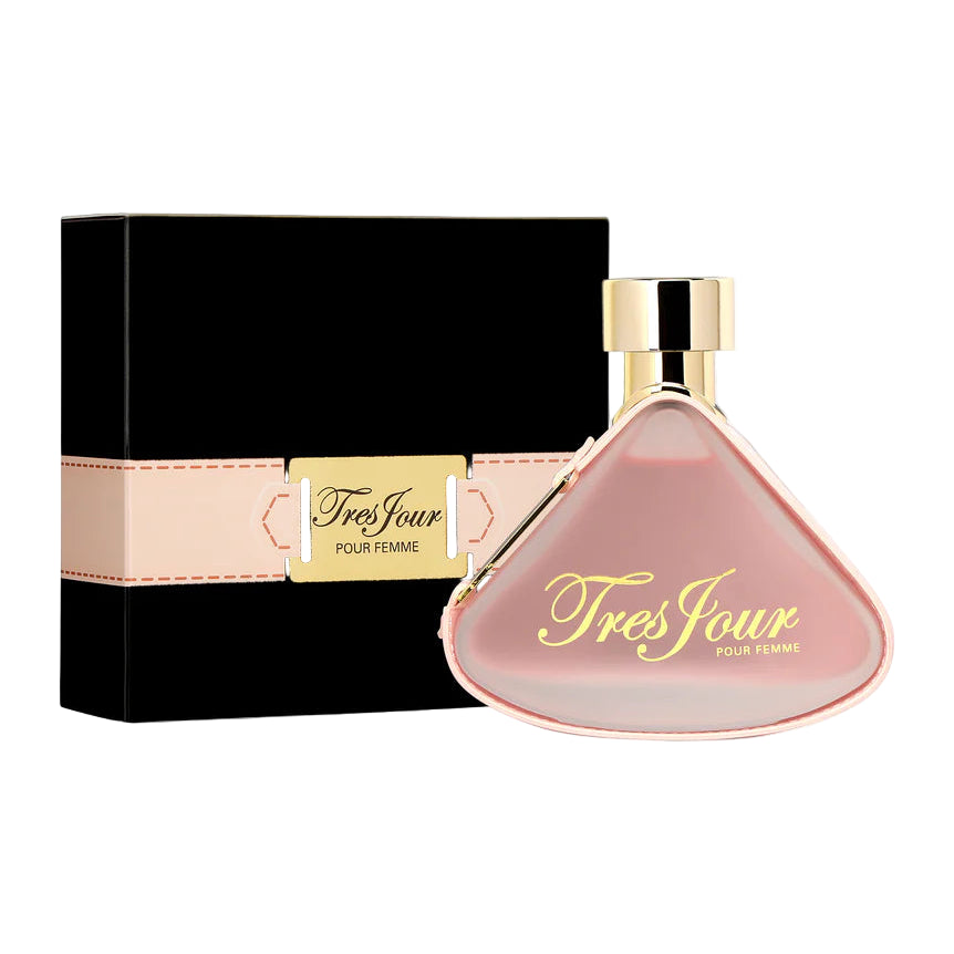 Tres Jour by Armaf is a Floral Woody Musk fragrance for women. Top notes are Green Tea, Lemon and Neroli; middle notes are White Flowers, Jasmine and Tuberose; base notes are Musk, Cedar, Patchouli and Vanilla.