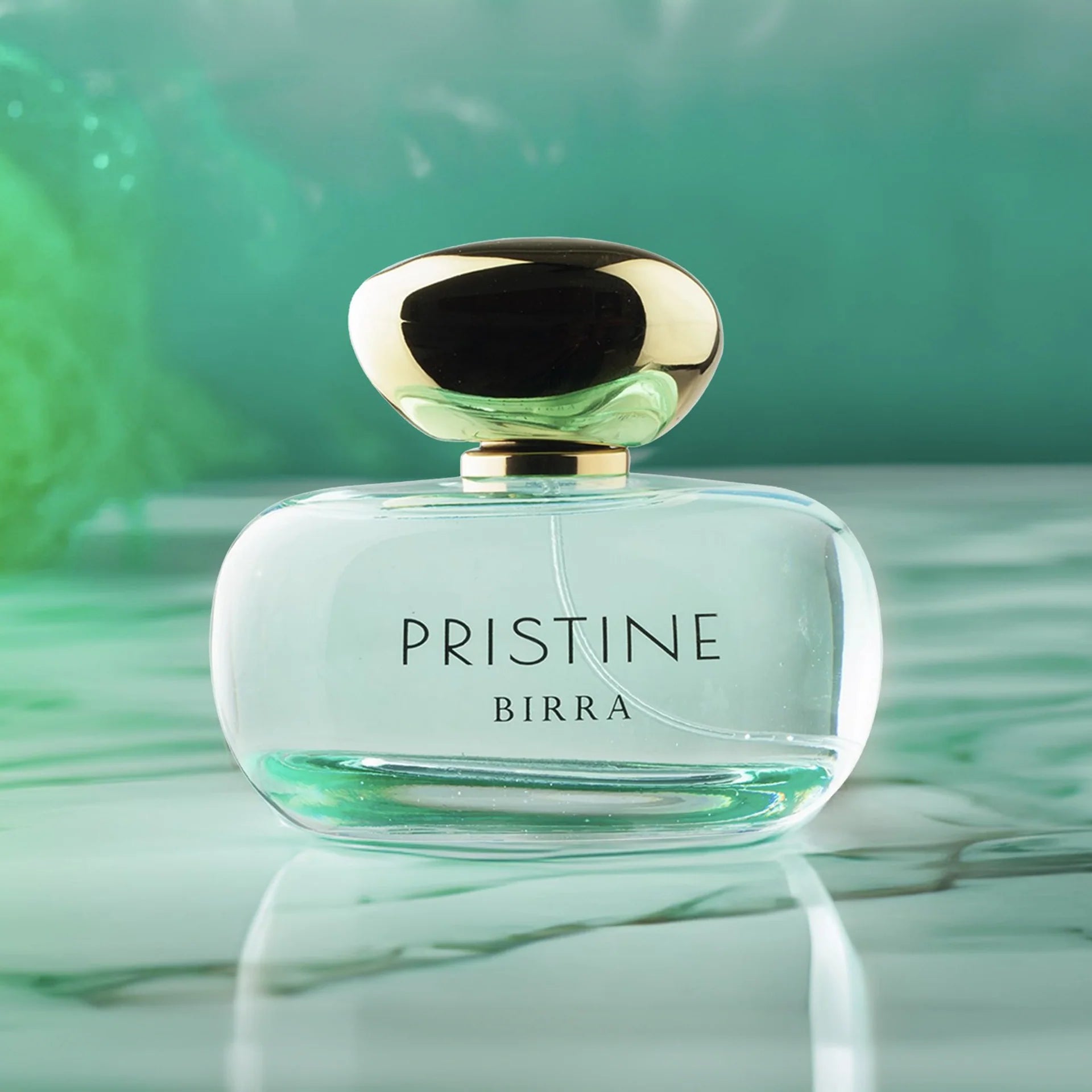Pristine, an exquisite fragrance, opens with a delicate blend of violet and ambrette, offering a powdery softness and subtle allure. Transitioning gracefully, it unveils a heart of succulent pear, creamy sandalwood, and the timeless grace of jasmine.