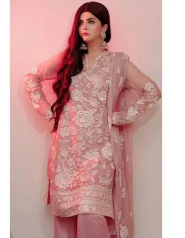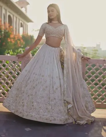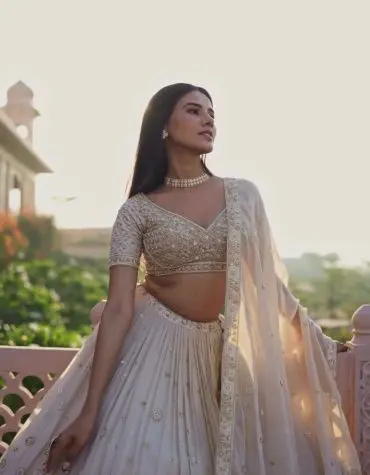 * Fabric: Heavy Roman Silk with a full flair and embroidery sequence work.