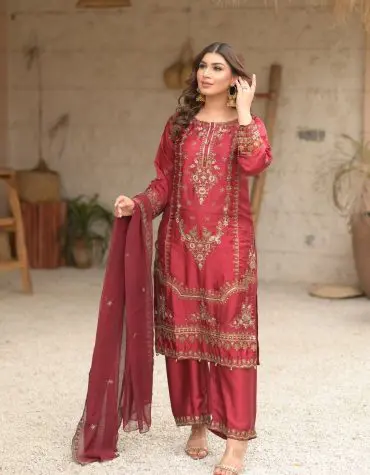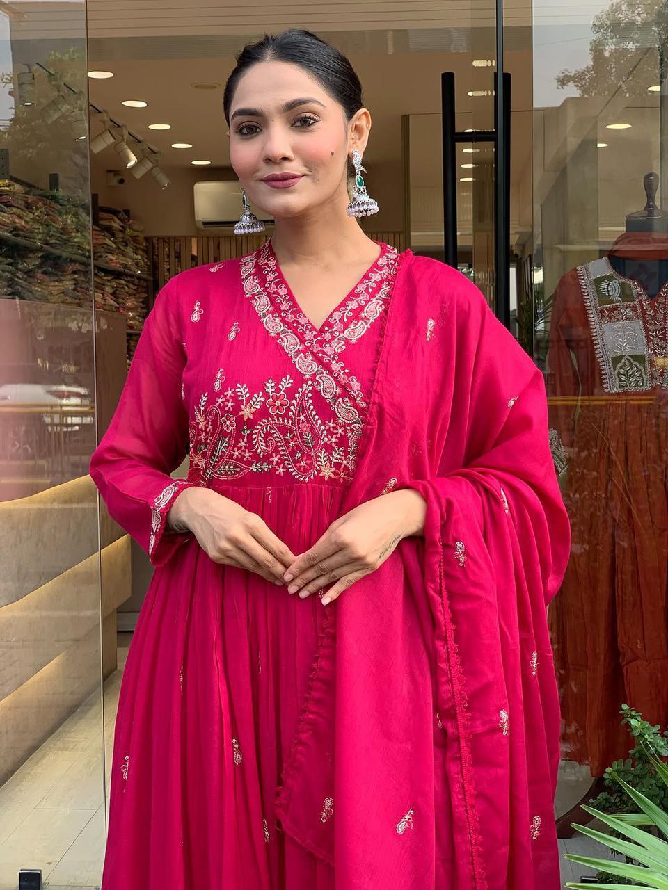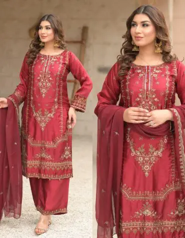 Crimson Elegance Embroidered Anarkali Set – Festive Edition