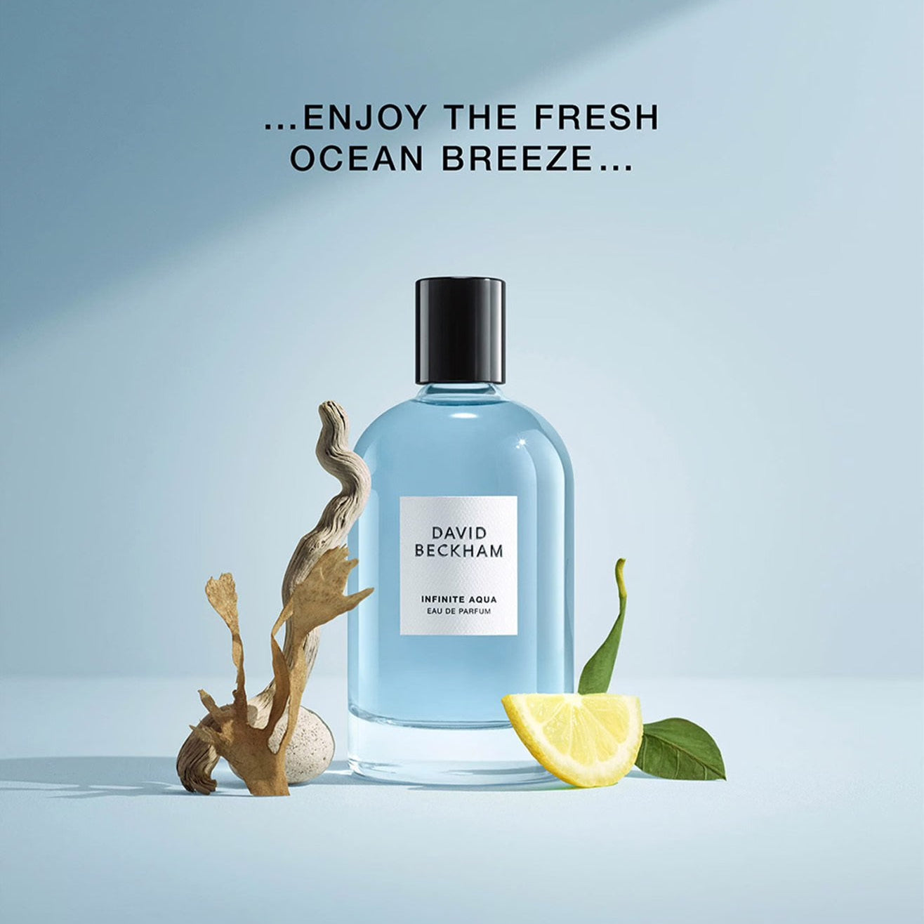 DAVID BECKHAM Infinite Aqua Eau de Parfum was inspired by a drive along the pacific coast highway, the sheer expansiveness of the ocean and the exhilarating feel of salty sea air on the skin. Top note – at first, citrusy green notes of lemon and fig blend with an aquatic ocean breeze accord to create an enlivening wave of refreshment. Heart notes – in the heart, clean and airy tones of lavender and waterlily add a splash of masculine floral radiance. Base note – this evolves into a woody-mossy base with soft resinous accents of cedarwood and sandalwood.