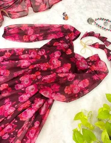 - Exquisite Magenta Hue: The vibrant magenta color adorned with intricate golden motifs adds a royal and festive charm to your wardrobe.