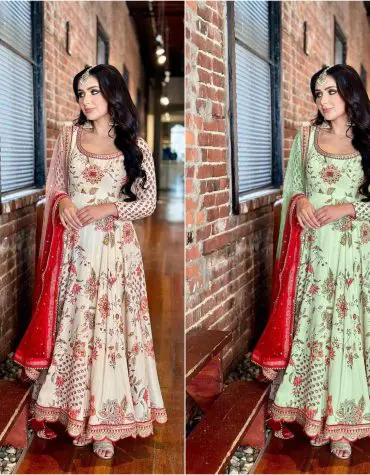 - Elegant Anarkali Design: Features a floor-length Anarkali silhouette, designed to flatter every body type and make you stand out at any occasion.