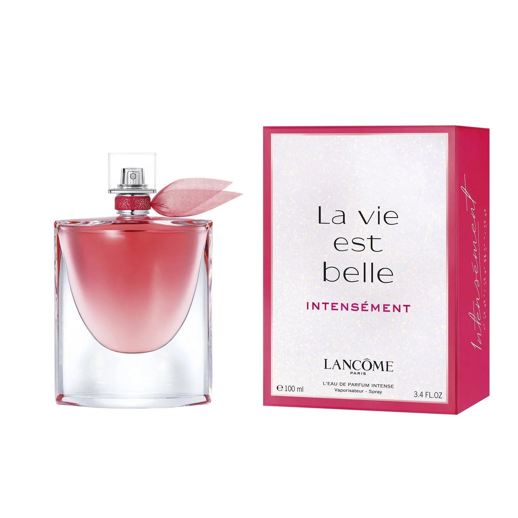 La Vie est Belle Intensement eau de parfum offers a warm-hearted radiance of the emblematic crystal smile, adorned with an intense fuchsia juice. Like a beating heart, evoking flames and embers. Warming up the atmosphere from its ardent heart and spreading its flames to the tip of its wings.