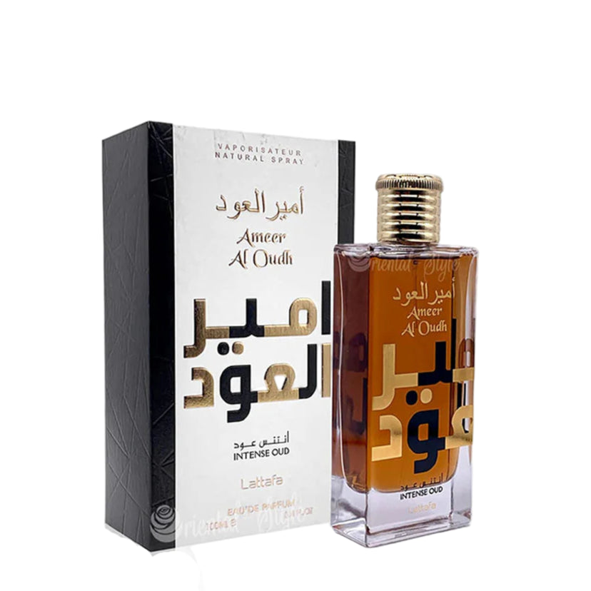 Ameer Al Oudh Intense Oud by Lattafa Perfumes is a Oriental fragrance for women and men. Ameer Al Oudh Intense Oud was launched in 2021. Top notes are Woodsy Notes and Agarwood (Oud); middle notes are Sugar and Vanilla; base notes are Agarwood (Oud), Sandalwood and Herbal Notes