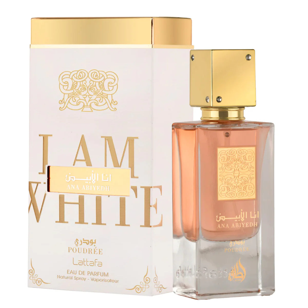 Ana Abiyedh Poudrée by Lattafa Perfumes is a Floral fragrance for women. This is a new fragrance. Ana Abiyedh Poudrée was launched in 2023. Top notes are Orange Blossom, Rose and Jasmine; middle note is Musk; base notes are Vanilla, Tonka Bean, Cedar, Patchouli and Vetiver.