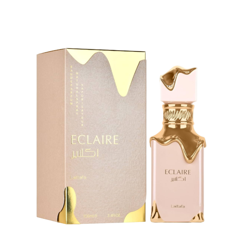 Eclaire by Lattafa Perfumes is a Floral Fruity Gourmand fragrance for women. This is a new fragrance. Eclaire was launched in 2024. Top notes are Caramel, Milk and Sugar; middle notes are Honey and White Flowers; base notes are Vanilla, Praline and Musk.