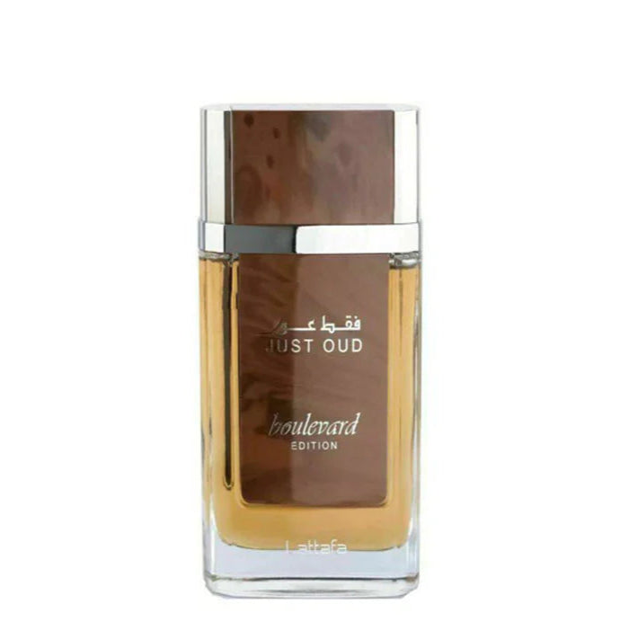 Just Oud Boulevard by Lattafa Perfumes is a Oriental Woody fragrance for women and men. Just Oud Boulevard was launched in 2014. Top notes are Saffron and Cardamom; middle note is Lily-of-the-Valley; base notes are Agarwood (Oud), Vanila, Amber, Cypriol Oil or Nagarmotha, Leather, Guaiac Wood, Musk and Patchouli.