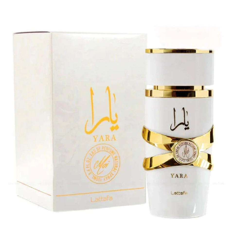 Yara Moi by Lattafa Perfumes is a fragrance for women. This is a new fragrance. Yara Moi was launched in 2022. Top notes are Jasmine and Peach; middle notes are Caramel and Amber; base notes are Patchouli and Sandalwood.