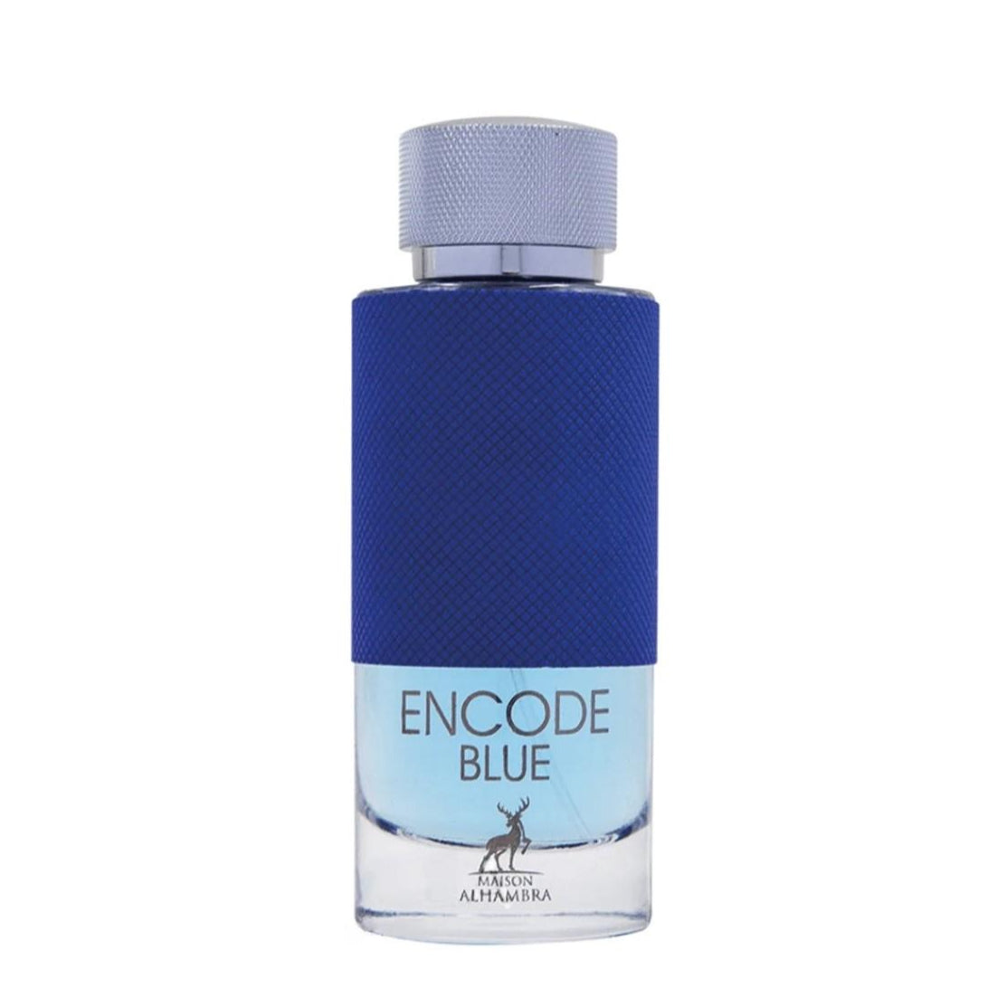 Encode Blue by Maison Alhambra is a Aromatic Aquatic fragrance for men. Encode Blue was launched in 2023. Top notes are Exotic Fruits, Bergamot and Pink Pepper; middle notes are Ambergris and Marine notes; base notes are Woodsy Notes, Leather and Patchouli