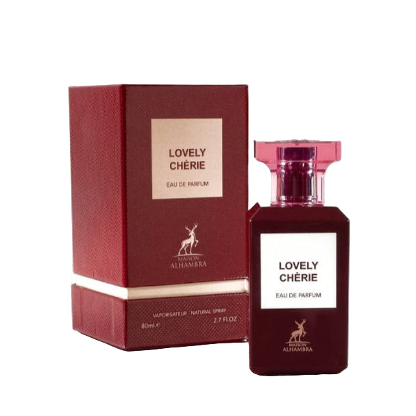 Lovely Chèrie by Maison Alhambra is a fragrance for women and men. Top notes are Bitter Almond and Rose; middle notes are Cherry, Black Cherry and Amber; base notes are Tonka Bean, Toffee and Peru Balsam