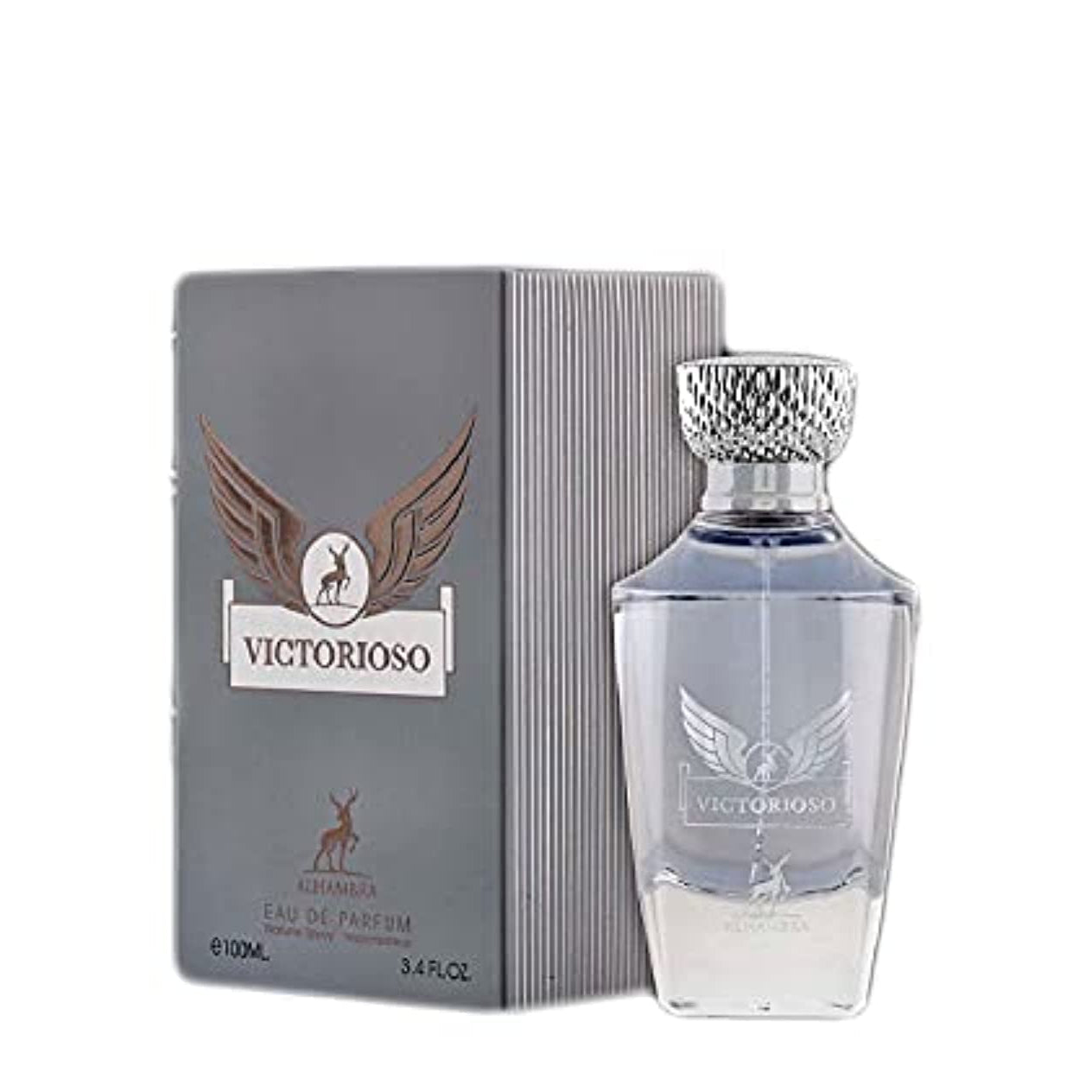 Victorioso by Maison Alhambra is a Woody Aquatic fragrance for men. Victorioso was launched in 2022. Top notes are Marine notes and Bergamot; middle notes are Bay Leaf and Jasmine; base notes are Ambergris, oak moss, Patchouli and Guaiac Wood