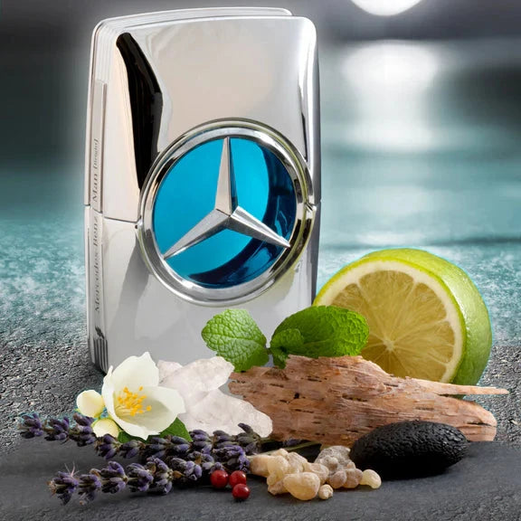 To echo the name of this fragrance and the man who makes it his signature, the Mercedes-Benz Man Bright bottle sparkles like the stars. With its all over shiny chrome finish and magnified star positioned on its neon blue porthole, it becomes a futuristic object imbued with uncompromising modernity.