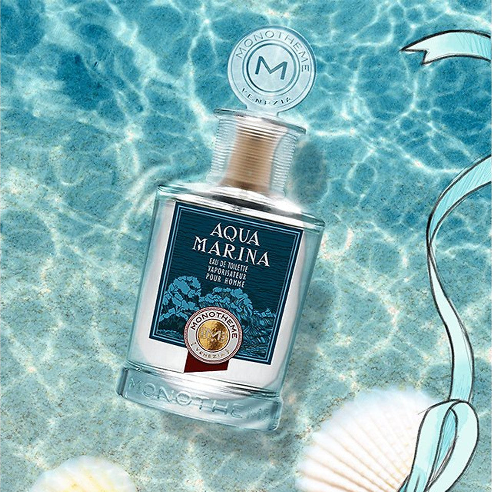 Aqva Marina is a fragrance from the Monotheme Classic collection. The Classic collection includes recognizable and charismatic scents (vetiver, musk, tea, patchouli) which are classified as the classic components of perfumes. All mono – compositions were inspired by Nature; each one of them is dedicated to a beautiful nature scent. Aqva Marina is a scent of fresh marine water; that is the impression that the fresh mix of aquatic notes and frozen citruses (lemon, lime, grapefruit and mandarin) leaves at the beginning, followed by the spicy heart of carnation leaf, cardamom, nutmeg and aromatic herbs: bay, sage and rosemary. The top freshness makes a contrast with the warm base of cedar wood, amber and vetiver.
