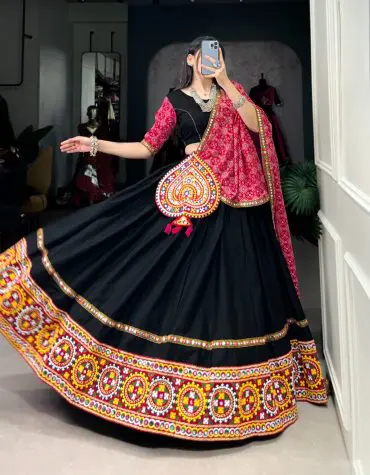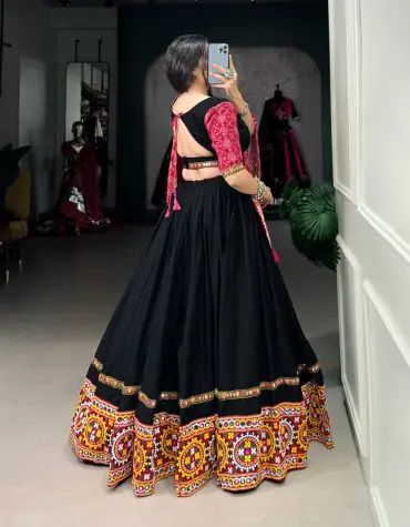 - Pure Georgette fabric with chain-stitch embroidery and original mirror work
