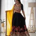 With a silk inner lining, the faux georgette fabric drapes effortlessly, offering both comfort and style. The full flair plazo and delicately embroidered dupatta complete the set, making you the epitome of grace wherever you go.