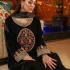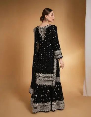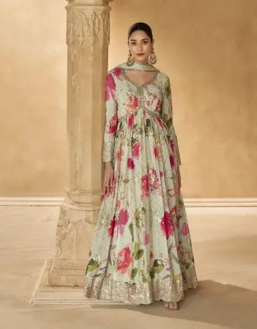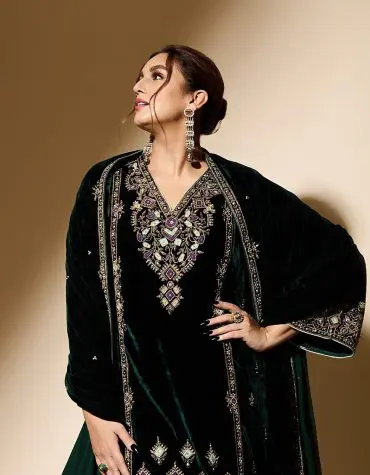 - Exquisite Zari Embroidery: Adorned with intricate zari and stone embroidery for a regal look.