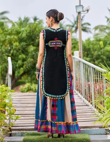 - Gown: Heavy georgette with sequins, zari & thread embroidery work and 3-meter flair