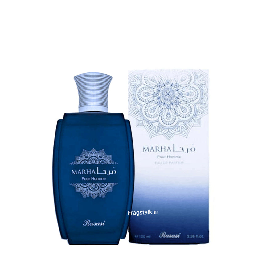 Marha Pour Homme by Rasasi is a Oriental Woody fragrance for men. Marha Pour Homme was launched in 2022. Top notes are Raspberry, Saffron and Thyme; middle notes are Olibanum and Jasmine; base notes are Leather, Suede, Woody Notes and Amber