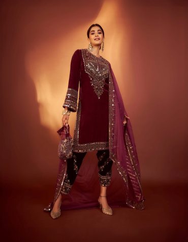 Step into the spotlight with our Royal Velvet Elegance Ensemble. This meticulously crafted wedding wear set comprises a luxurious top, lehenga, and dupatta, each designed to make you feel like royalty on your special day.