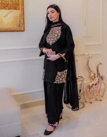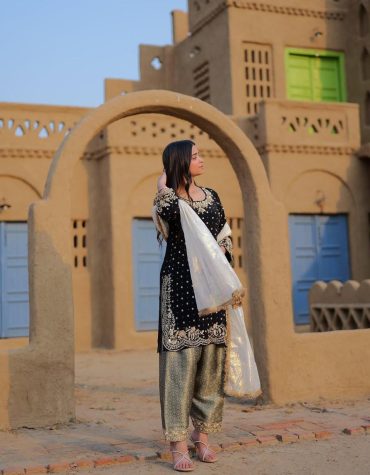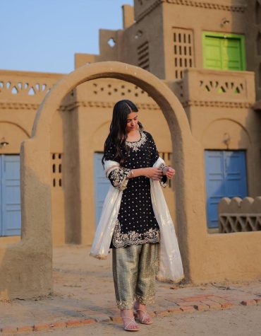 Luxury Black Kurta with Gold Trousers & Dupatta